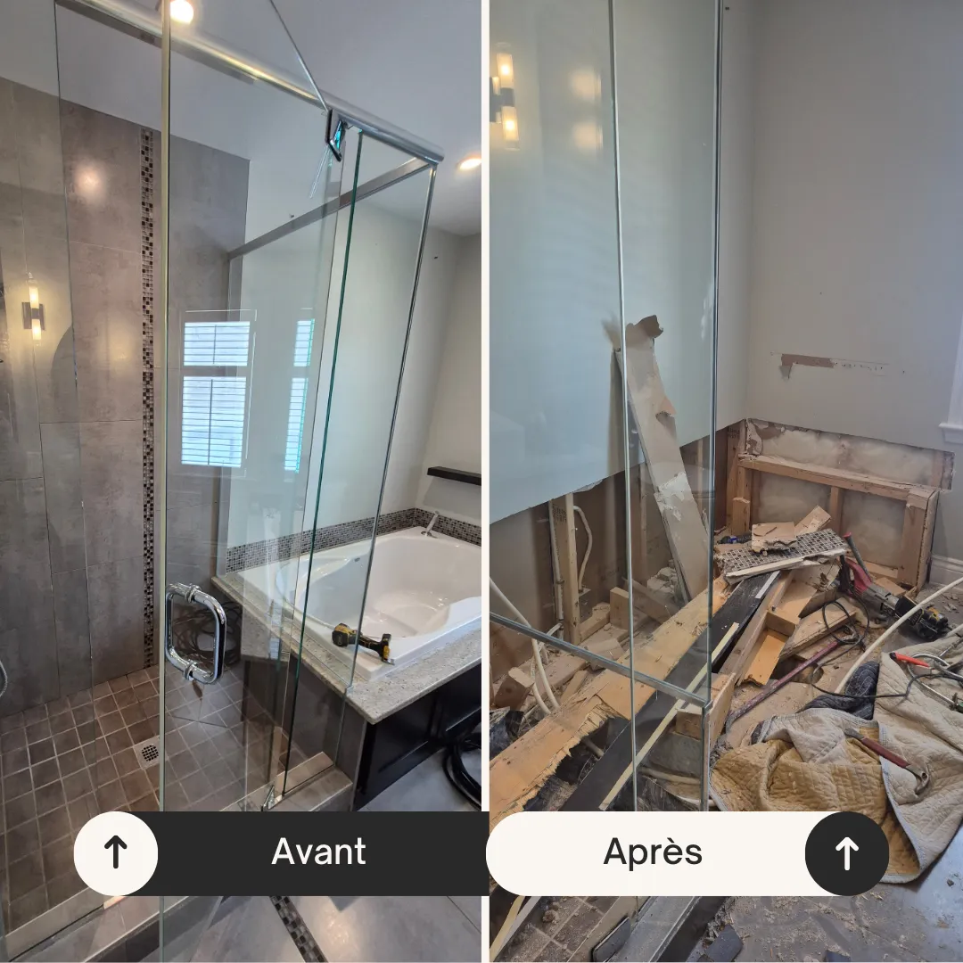 Retrait des matériaux existants, préparation des surfaces et coordination avec l’entrepreneur général pour assurer un déroulement fluide.